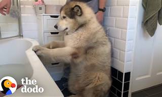 "Hora do banho", causa hilariantes cenas de um cachorrão